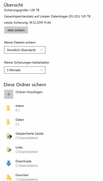 Hallo Zusammen, ich hab einen Windows 10 Client (als Datenablage) mit zwei gespiegelten SSD und einer HDD für die Vorgängerversionen. Über Sicherung eingerichtet. s. Bild. Jetzt hab ich in einem Ordner aber komischerweise die doppelte Anzahl von Dateien, mit Datum und UTC, auf der SSD. S. Screenshot. Das dürfte doch nicht sein. Die sollen doch auf der HDD liegen. Hat jemand eine Tipp wie man das wieder gerade bekommt. Ich möchte nicht unbedingt 78.000 Dateien aussortieren :-). Grüße Olaf -