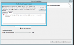 Hallo MCSEboard, habe ein Problem mit Outlook und Exchange. Auf einem Terminalserver ist Office 2013 installiert. Das Outlook dort kann sich nicht mit dem internen Exchange per Active Sync verbinden, egal bei welchem Benutzer auf dem Terminalserver. Die Office-Version ist speziell für Terminalserver. Die Verbindung kommt zustande, jedoch erscheint eine Zertifikatswarnung. Nach akzeptieren des Zertifikats. erscheint folgende Fehlermeldung: Irgendjemand eine Idee an was das liegen könnte? Habe bereits das Connectivity Tool von Microsoft ausgeführt, jedoch ist das genauso wenig aufschlussreich. Gruß -