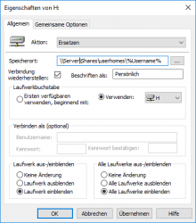 Hallo zusammen Ich habe hier ein Problem, bei dem ich nicht mehr weiter weiss. Auf einem Windows Server 2016 läuft ein AD, welches mittels AD Policy zwei Laufwerke zuweisen sollte. Laufwerk H:\ als persönliches Laufwerk für User (Home) Laufwerk J:\ als gemeinsames Laufwerk Ich habe eine Policy unter Benutzerkonfiguration / Einstellungen / Windows Einstellungen / Laufwerkszuordnungen erstellt und wie im Bild ersichtlich konfiguriert. Als Clients kommen nur Windows 10 zu Einsatz. Mein Problem besteht nun darin, dass ich die Laufwerke beim Client nicht sehe. Die Laufwerke sind aber verknüpft. Ich kann sie mittels Eingabe des Laufwerksbuchstaben öffnen und sehe sich bei "Netzlaufwerk verbinden" als belegte Buchstaben. Ich habe schon viel ausprobiert und im Netz nach einer Lösung gesucht. Bisher ohne Erfolg. Hat wer einen Rat? Gruss Schubo