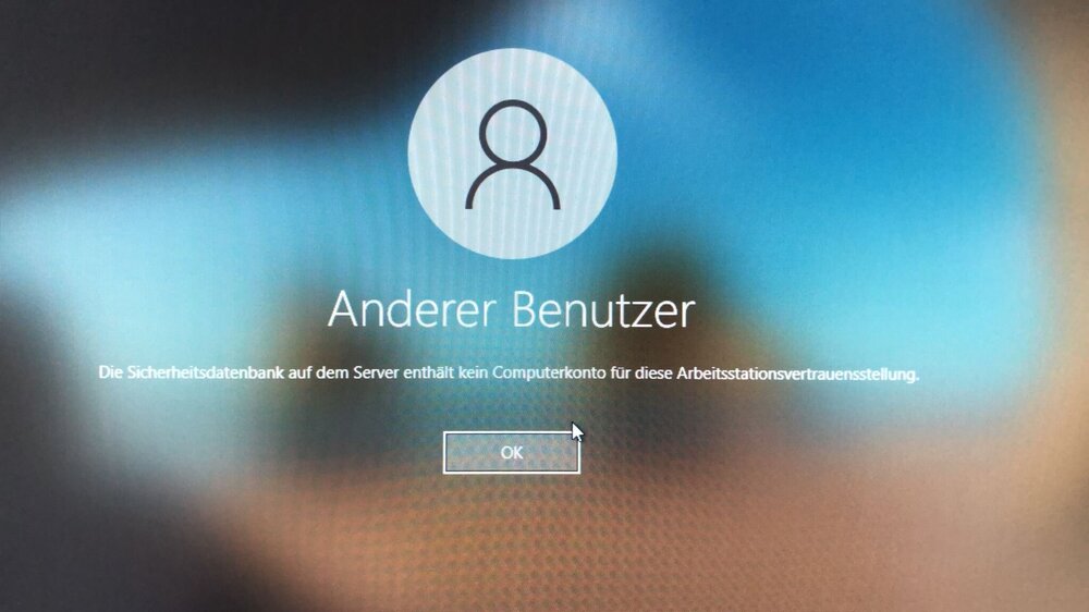 Vielen Dank. Ich konnte nun einen Screenshot bekommen. Es ist doch eine etwas andere Fehlermeldung: Wenn ich aufs Netzwerk klicke, ist der Zusatz "nicht authentifiziert". Ich konnte das Login wieder ermöglichen mit: Als lokaler Admin einloggen und ausführen von: Reset-ComputerMachinePassword -Server MyDC -Credential contoso\admin Ein Neustart war nicht nötig ... aber warum wurde das Maschine Password nicht erneuert ... der PC wird mind. alle 2 Tage benutzt. -