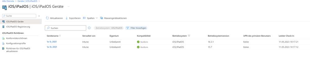 Hallo! Ich möchte von Mirador auf Intune umsteigen. Ich konnte den Business Manager einbinden sowie VPP. Zum testen habe ich 2 iPads. Nach dem einschalten zeigte er die entfernte Verwaltung an und habe beide in Intune (Endpoint Manager) gelistet: Auch habe ich vom VPP alle Apps in Intune. Nun möchte ich 2 Gruppen machen, die unterschiedliche Apps und Richtlinien bekommen: Grp_default Grp_admin Zuerst muss ich ja die iPads in die jeweilige Gruppe legen. Da bitte ich um Hilfe. Danach muss ich jeder Gruppe die Apps zuweisen, die dann auf den iPads ausgerollt werden sollen. Vielen Dank!