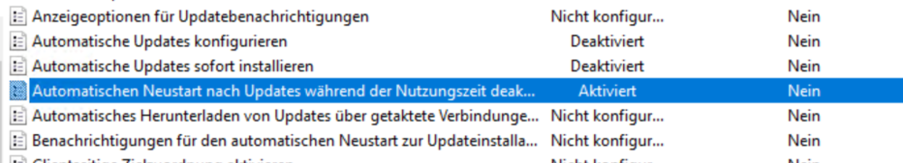 Hallo, hat nun alles gut geklappt Nun wäre noch ein Punkt zu erledigen: Die Schüler Notebooks sollen nicht automatisch Updates installieren. Wenn diese die Notebooks starten und ein großes Update läuft, behindert das den Unterricht. ich habe per Gruppenrichtline: mal alles deaktiviert. Passt das soweit? Am Server ist WSUS installiert ... kann ich ein Update per Script oder Kommando manuell auf allen Rechner starten? Dann ist einmal in der Woche am Ende der Stunde ein Update check und Installation. Oder wir würdet ihr das machen? -