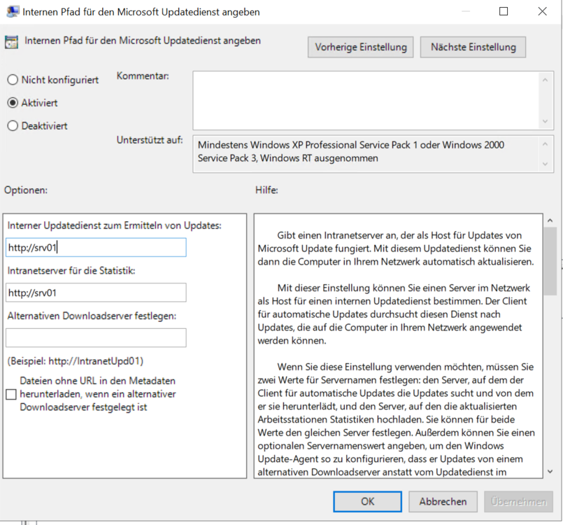 Die Notebooks bleiben so lange am Tisch, bis die fertig sind .. der Lehrer räumt dann weg (Wurde mir gesagt). Alle Notebooks kommen in einen Schrank und hängen am Strom. Leider habe ich wohl beim hinzufügen zum WSUS noch ein Problem. srv01 ist der Wsus Server .. muss ich noch einen Port angeben oder das irgendwo sonst noch aktivieren? GP wurde manuell aktualisiert. -