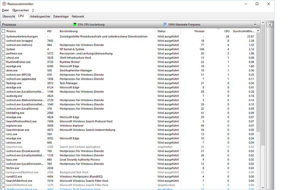 Windows 10 Client - CPU Last durch Systemunterbrechungen