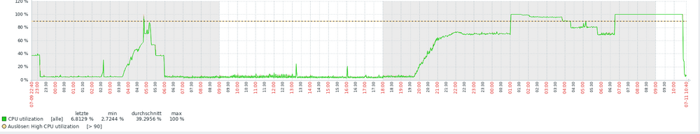 Heute Nacht war es mal wieder so weit: 100% CPU Last.... Also war in diesem die Treiber Isolation leider noch nicht die Lösung, also weiter suchen, denn von alten, nicht mehr benötigten Treibern habe ich den Server bereits befreit und jetzt im Schuljahr (hier an BaWü haben wir noch bis Ende des Monats Schule) darf ich die Treiber nicht aktualisieren... Gruß Norbert -