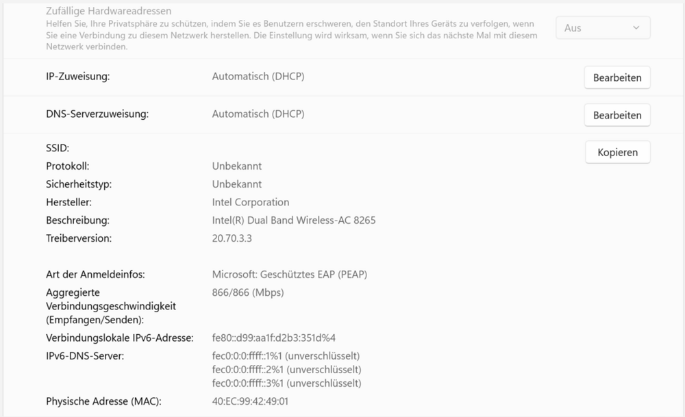 Hallo Freunde der Windows Welt, ich verzweifel gerade bei uns an der Schule an der Windows 11 Umstellung... Wir haben ~200 Notebooks unterschiedlicher Modell (alles HP) die bislang problemlos auf Windows 10 liefen. Vereinzelte Geräte funktionieren bereits seit rund zwei Jahren mit Windows 11, der Rest soll jetzt über die Sommerferien auf Windows 11 aktualisiert werden. Leider haben die meisten Maschinen nach dem Update das Problem, das sie sich nicht mehr mit dem Radius gesicherten WLAN verbinden können. Da neu installierte Maschinen problemlos laufen kann ich die GPOs und auch den NPS ausschließen, nach langer Suche ist uns folgendes aufgefallen: Im bekannten WLAN gibt es zwar das Profil - aber ohne SSID??? Auch löschen des Ordners C:\Windows\wlansvc\Policies und damit der übernommenen Richtlinie hilft nicht weiter.... Was auch für die Diagnose spricht das der Client das Sorgenkind sein muss: Am NPS kommen keinerlei anfragen vom Client an.... Ratlose Grüße Norbert -
