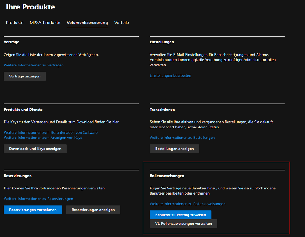 12. Er hat keine Lizenzrolle bekommen. Die musst du explizit zuweisen. Ein User der das darf (und jetzt Volumenlizenzierung angezeigt bekommt), kann das tun.