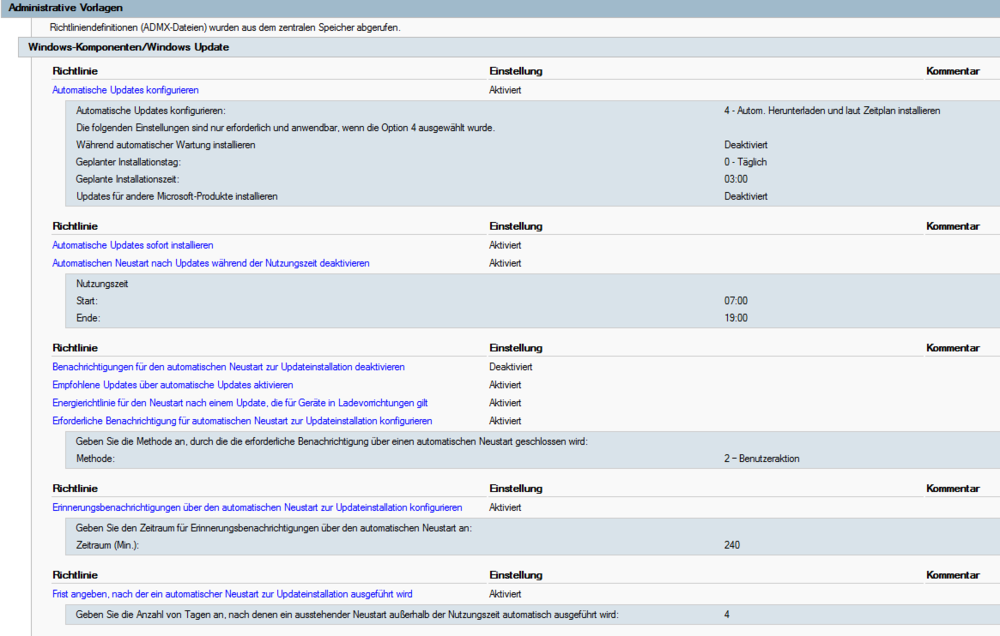 Wenn sie nicht an sind, macht das nichts. Der User bekommt Meldungen und der Rechner wird nach 4 Tagen neu gestartet. Siehe auch letzte Einstellung im Teil 1. -