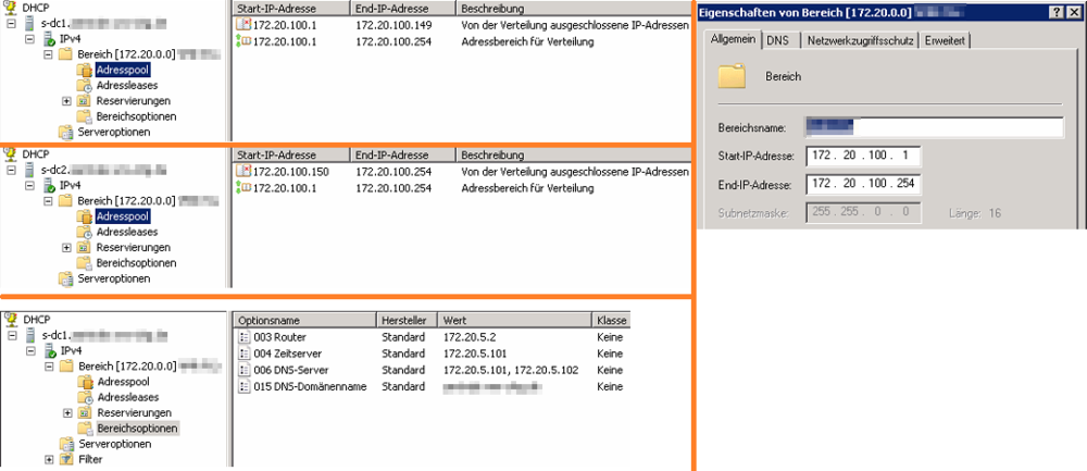 Ich habe zwei DHCP Server (Windows Server 2008 R2 als Domain Controller - ja ich weiss muss in den nächsten 1,5 Jahren ausgetauscht werden wegen Support - und ja ich weiss, nicht optimal auf DCs) in unserem Netzwerk.