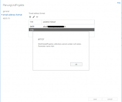Fehler beim anpassen der Exchange Adressrichtlinie im GUI