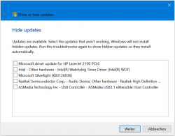 Liebe Forengemeinde, ich wundere mich seit einiger Zeit, das meine PCs und Laptops keine Windows-Updates anzeigen, Updateverlauf. Jetzt habe ich das MS-eigenen Tools wushowhide.diagcab laufen lassen. Auf meinen PC werden verfügbare Updates angezeigt, siehe bitte Anhang. Auf einem Lenovo-Laptop sind es über 15 Stück verfügbare Updates, welche ich mittels des Tools ausblenden könnte, teils Sachen die ich schon gerne hätte. Auf allen Geräten werden diese Updates jedoch nicht durch Windows-Update installiert/gefunden. Die üblichen Methoden zur Reparatur der Update-Funktion haben nichts gebracht. Die Frage ist, was tun? Kann das Verhalten jemand reproduzieren? Vielen Dank im Voraus für eure Hilfe, Astrophytum -