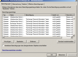 Hallo Nils, das wir die Replikation abgeschaltet haben nach der Säuberung hatte u.a. den Grund das wir herausfinden wollten wie sich das AD DS nach dem vorbereiten auf Exchange verhält. Vorher gab es u.a jede Menge Fehler die von dcdaig und weiteren Analyse Tools ausgeworfen wurden. In einer Umgebung, die nicht so verbaut ist käme uns das auch nicht in den Sinn. Alle Objekte die Administrative Funktionen ausführen haben eine Reihe unbekannter Konten im Sicherheitsreiter des jeweiligen Objekts. Das kann der Account Administrator sein, das kann der Account IT_Admin sein völlig egal. Sobald diese Accounts die Gruppen Organisations-Admins, Domänen-Admins etc. zugewiesen haben tauchen diese Konten nach einiger Zeit dort wieder auf. Selbst wenn sie entfernt wurden und der Account auf Standardwerte zurückgesetzt wurde. Bei genauerer Analyse stellt man fest das dies alles alte Exchange Objekte sind wie z.B. die Server oder Subsystem Gruppe... Mit Stamm vorbereitet meinte ich die Anpassung des Schemas, die Vorbereitung des AD DS für Exchange. Sprich sämtliche Vorab Vorbereitungen des AD DS für Exchange. Ich leider auch nicht. Solange es keine Exchange Vorbereitung gibt im AD DS tauchen diese unbekannten Konten nach entfernen nicht wieder auf. Wird aber die Vorbereitung durchgeführt sind kurze Zeit später auf den genannten Konten die unbekannten Konten wieder da. Ein Vergleich in einer sauber aufgesetzten Testinstallation konnte dieses Verhalten nicht hervorrufen. Grüße Fly87 -