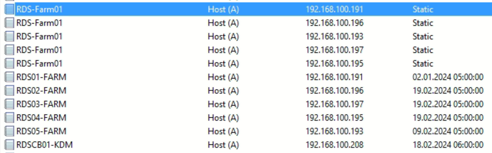 Hallo, das Problem tritt aktuell nicht auf. Trotzdem habe ich mir die DNS Konfiguration angeschaut. Hierbei ist mir aufgefallen, dass für jeden Host in der Sammlung ein DNS Eintrag erstellt wurde. Das war doch noch die Vorgehensweise bis TS 2008 Server. Könnt ihr mir bitte mitteilen wie die DNS Konfiguration bei einer RDS 2016 Farm aussehen muss. Vielen Dank im Voraus -