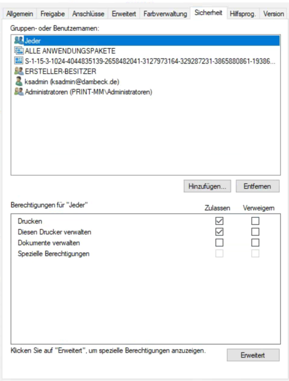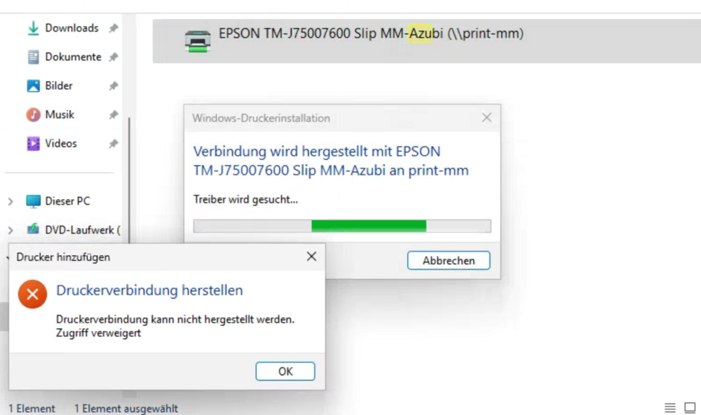 Hallo zusammen, ich betreibe einen dedizierten Printserver auf Windows Server 2022 (Build 10.0.20348.1). Der DC läuft ebenfalls auf Server 2022, beide Maschinen sind also voneinander getrennt. Unsere Clients Windows 11 - 10, alle sauber in die Domäne eingebunden. Das Problem: Sobald sich ein normaler Domänenbenutzer per Explorer (\\print‑mm) mit einem freigegebenen Drucker verbindet, erscheint nahezu direkt „Treiber wird gesucht …“ und endet dann reproduzierbar mit dem Dialog. Auf dem Print-Server ist bei den Berechtigungen für den Drucker und den Treiber Die Berechtigung "Jeder" gesetzt mit den Rechten "Drucken, Diesen Drucker verwalten". Druckerverbindung herstellen Druckerverbindung kann nicht hergestellt werden. Zugriff verweigert. Melde ich mich als Domänen‑Admin am gleichen PC an, lässt sich der Drucker ohne Rückfrage sofort installieren – der Treiber ist also grundsätzlich vorhanden und freigegeben. Auf dem Printserver liegen ausschließlich paket‑signierte Type‑3‑Treiber. Was ich bisher untersucht habe Registry auf dem Print-MM Server: Unter HKLM\…\Printers\PointAndPrint finde ich Restricted = 1 und ServerList = Print‑MM (ohne FQDN). Der Schlüssel RestrictDriverInstallationToAdministrators existiert gar nicht. (Ich hatte darüber was unter Microsoft Support point-and-print-default-driver-installation-behavior gelesen) die Einstellung existiert außerdem nicht in den Gruppenrichtlinien. Gruppenrichtlinien: In der GPMC steht „Point‑and‑Print‑Einschränkungen“ aktuell auf Deaktiviert. „Installation von Treibern für diese Gerätesetupklassen ohne Administratorrenrechte zulassen“ ist auf Aktiviert mit folgenden Klassen: {4d36e979-e325-11ce-bfc1-08002be10318} {6bdd1fc6-810f-11d0-bec7-08002be2092f} GPUpdate & Neustart: Sowohl gpupdate /force als auch ein kompletter Reboot der Clients bringen keinen Unterschied. (Das Problem besteht auf allen Clients) Im Moment komme ich hier leider nicht weiter. Falls jemand dieses Problem schon erfolgreich lösen konnte oder einen konkreten Ansatz kennt – gerne auch nur eine Idee, freue ich mich über jeden fundierten Hinweis. Vielen Dank vorab für eure Unterstützung! Viele Grüße