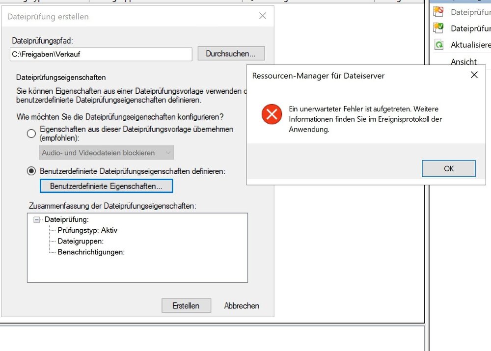 Nach Dateiprüfungserstellung keine GPO mehr möglich