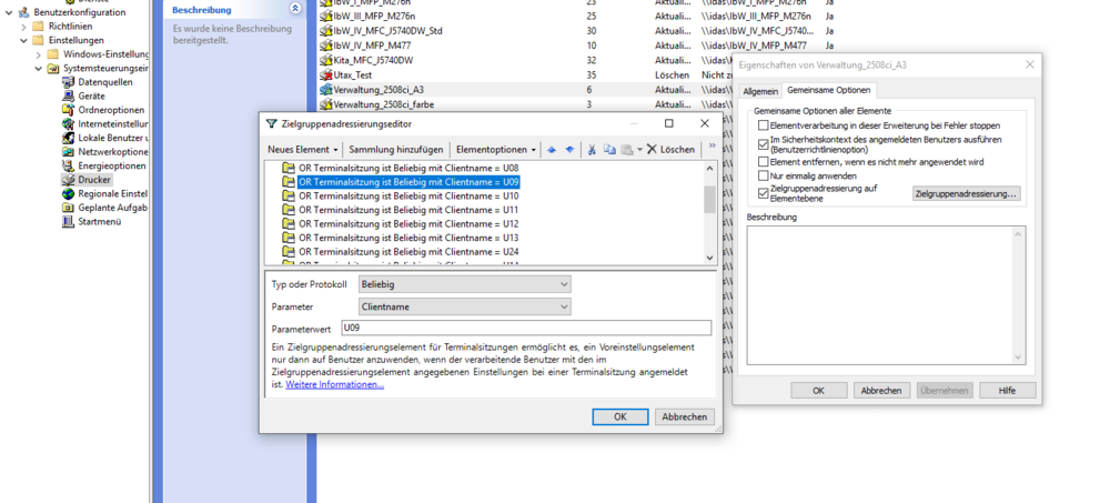 @daabm das sind Igel Rechner die per RDP sich zum Cluster verbinden. Ich habe die Drucker unter User GPO Erstellt und die Zuweisung erfolgt über den Clientname. Wenn ich über die Freigabe gehe dann kann ich einzelne Drucker Installieren, leider nicht mehr den Utax Drucker. Als ich vor 3 Monaten die 3 TS Server Installiert habe hat auch die GPO etc alles super funktioniert und die Drucker konnten zugewiesen werden. Ich werde aus den Fehlermeldungen auch nicht schlau. Ich habe auch seit 12/2024 lauter Meta Daten Einträge im Sekundentakt -