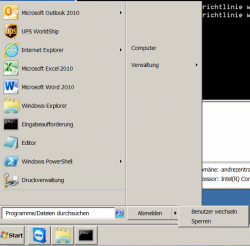 Das Profil ist nur eingeschränkt nutzbar, keine Taskleistensymbole unten links mehr, "Alle Programme" fehlt, Herunterfahren button fehlt, Windows + E schlägt mit