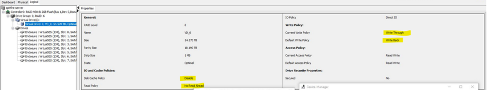 Moin, es wird doch angezeigt keine BBU, dann geht der Controller zu Write Trough. Wie man auf Deinem ersten Bild auch im Controllerlog sieht. -