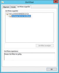 7. Ja es wird von einer CA ausgestellt. Ich habe das vom Browser heruntergeladen und installiert und auch das orginal Zertifikat vom Exchange Server( nachdem das vom Browser nicht funktionierte) installiert am Clienten . Trotzdem keine besserung.