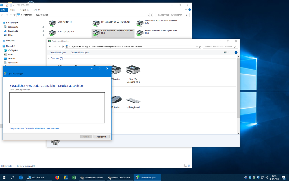 Hallo miteinander, ich habe mal eine Frage bezüglich des Verbinden von Druckern, wir haben in unserem AD einen Druckserver an diesen sind die einzelnen Drucker angebunden und im Netzwerk freigegeben. Jetzt ist aber manchmal das Problem das die Clients (WIndows10) die Drucker über Systemsteuerung Geräte und Drucker hinzufügen verbinden wollen. Bei einigen werden dort aber die Drucker nicht angezeigt (bei anderen ja) und ich versteh nicht warum? Die Alternative ist dann direkt die UNC Freigeben des Druckserver auf zu rufen und die freigegebenen Drucker zu verbinden. Kann mir einer sagen wie die Drucker über die Systemsteuerung, Drucker dort gefunden werden (wird das das AD abgefragt oder so)? Im Bild sieht man den Dialog und die Direkte UNC Abfrage dahinter. Grüße und Danke