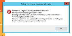 Ja...."ei sichiii" .....GC sind beide Server , DNS Server auch. Ganz genau - ich kann auf keine dieser AD Tool mehr zugreifen - bzw. erhalte dann die Fehlermeldung das da keine AD sei . AD Tools für "Benutzer u. Computer", " Domäne u. Vertrauensstellung ", "Standorte-Dienste", "AD Verwaltungscenter" - nix geht hier. Oh ... ich muss mich genauer ausdrücken: sorry - öffnen der Tools geht schon noch nur bekomme ich keine Objekte / Inhalte etc. angezeigt. es gibt nur ein weißes kreuz auf rotem Grund - und den Hinweis das die Domäne nicht vorhanden ist bzw. keine Verbindung zur Domäne hergestellt werden kann. Also es ist kein Fehler in dem Aufruf der Tools - sondern der Inhalt ist "futsch". -