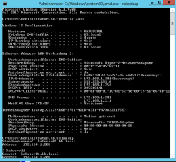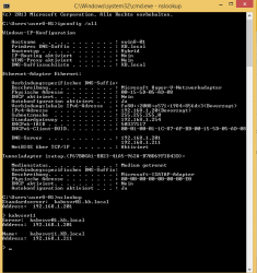 oh Entschuldigung. also dann: Microsoft Windows [Version 6.3.9600] © 2013 Microsoft Corporation. Alle Rechte vorbehalten. C:\Users\user8-01>nslookup kb.local Server: kabvsvr01.kb.local Address: 192.168.1.201 Name: kb.local Addresses: 192.168.1.211 192.168.1.201 C:\Users\user8-01>ping 192.168.1.201 Ping wird ausgeführt für 192.168.1.201 mit 32 Bytes Daten: Antwort von 192.168.1.201: Bytes=32 Zeit<1ms TTL=128 Antwort von 192.168.1.201: Bytes=32 Zeit<1ms TTL=128 Antwort von 192.168.1.201: Bytes=32 Zeit<1ms TTL=128 Antwort von 192.168.1.201: Bytes=32 Zeit<1ms TTL=128 Ping-Statistik für 192.168.1.201: Pakete: Gesendet = 4, Empfangen = 4, Verloren = 0 (0% Verlust), Ca. Zeitangaben in Millisek.: Minimum = 0ms, Maximum = 0ms, Mittelwert = 0ms C:\Users\user8-01>ping kabvsvr01 Ping wird ausgeführt für kabvsvr01.kb.local [192.168.1.201] mit 32 Bytes Daten: Antwort von 192.168.1.201: Bytes=32 Zeit<1ms TTL=128 Antwort von 192.168.1.201: Bytes=32 Zeit<1ms TTL=128 Antwort von 192.168.1.201: Bytes=32 Zeit<1ms TTL=128 Antwort von 192.168.1.201: Bytes=32 Zeit<1ms TTL=128 Ping-Statistik für 192.168.1.201: Pakete: Gesendet = 4, Empfangen = 4, Verloren = 0 (0% Verlust), Ca. Zeitangaben in Millisek.: Minimum = 0ms, Maximum = 0ms, Mittelwert = 0ms C:\Users\user8-01>ping 192.168.1.211 Ping wird ausgeführt für 192.168.1.211 mit 32 Bytes Daten: Antwort von 192.168.1.211: Bytes=32 Zeit=1ms TTL=128 Antwort von 192.168.1.211: Bytes=32 Zeit<1ms TTL=128 Antwort von 192.168.1.211: Bytes=32 Zeit<1ms TTL=128 Antwort von 192.168.1.211: Bytes=32 Zeit<1ms TTL=128 Ping-Statistik für 192.168.1.211: Pakete: Gesendet = 4, Empfangen = 4, Verloren = 0 (0% Verlust), Ca. Zeitangaben in Millisek.: Minimum = 0ms, Maximum = 1ms, Mittelwert = 0ms C:\Users\user8-01>ping kabvsvr11 Ping wird ausgeführt für kabvsvr11.kb.local [192.168.1.211] mit 32 Bytes Daten: Antwort von 192.168.1.211: Bytes=32 Zeit<1ms TTL=128 Antwort von 192.168.1.211: Bytes=32 Zeit<1ms TTL=128 Antwort von 192.168.1.211: Bytes=32 Zeit<1ms TTL=128 Antwort von 192.168.1.211: Bytes=32 Zeit<1ms TTL=128 Ping-Statistik für 192.168.1.211: Pakete: Gesendet = 4, Empfangen = 4, Verloren = 0 (0% Verlust), Ca. Zeitangaben in Millisek.: Minimum = 0ms, Maximum = 0ms, Mittelwert = 0ms C:\Users\user8-01>nslookup Standardserver: kabvsvr01.kb.local Address: 192.168.1.201 > kabvsvr01 Server: kabvsvr01.kb.local Address: 192.168.1.201 Name: kabvsvr01.KB.local Address: 192.168.1.201 > kabvsvr11 Server: kabvsvr01.kb.local Address: 192.168.1.201 Name: kabvsvr11.KB.local Address: 192.168.1.211 > 192.168.1.201 Server: kabvsvr01.kb.local Address: 192.168.1.201 Name: kabvsvr01.kb.local Address: 192.168.1.201 > 192.168.1.211 Server: kabvsvr01.kb.local Address: 192.168.1.201 Name: kabvsvr11.kb.local Address: 192.168.1.211 -