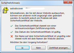Der öffentliche DNS Eintrag der Domain ist bei uns. Da ist kein autodiscover SRV Eintrag vorhanden. Ich werde das nochmal versuchen, mit dem Eintrag
