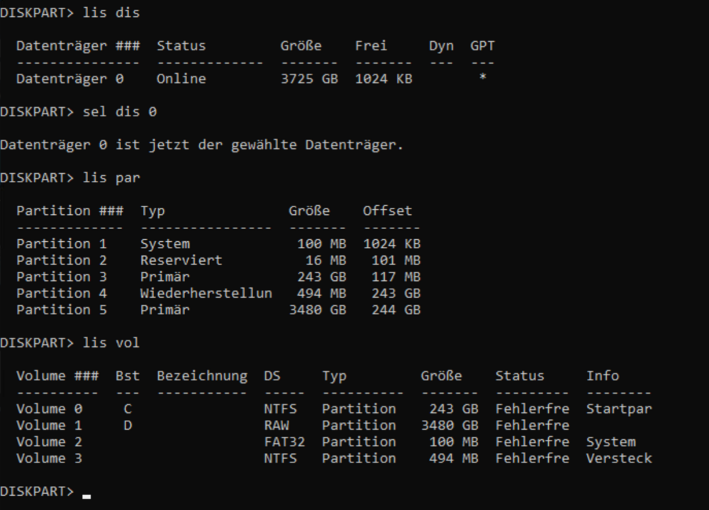 Hallo zusammen, wir haben auf einem Windows Server 2022 das Problem, dass die Datenpartition (Volume D) als RAW angezeigt wird (nach Neustart) und ein Zugriff somit nicht mehr möglich ist. Das ursprüngliche Dateisystem war REFS. Sowohl Systemplatte C also auch Datenpartition D sind via RAID-Controller auf einem RAID10. Hat hier vielleicht jemand eine Idee? Danke euch!