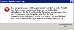 Hallo zusammen, ich benötige mal eure Hilfe weiß nicht mehr weiter. und zwar: Ich habe einen ESXi 6.0 Installiert auf diesen habe ich wiederrum zwei Windows Server 2008 RC2 Maschinen installiert. VMWare Tools sind installiert. Nun habe ich auf einem Server folgendes Problem. Eine USB Festplatte ist eingebunden. Jetzt sollte eine weitere USB HDD (1TB) eingedunden werden. Diese scheint auch vom System erkannt zu werden. (Seht bitte hierzu ScreenShot) Dies wird jedoch im Fenster oben nicht angezeigt. Auch bekommt diese keine Laufwerksbuchstaben zugewiesen. Nun habe ich versucht selbst einen Laufwerksbuchstaben zu vergeben. Gehe ich den Weg über das Kontext Menü "Laufwerksbuchstabe und pfade ändern" erscheint im ScreenShot zu sehende Fehlermeldung: Weder das aktualisieren oder neustarten des Snap-Ins noch der restart der Virtuellen Maschine war erfolgreich. Auch habe ich beide Festplatten unmounted und wieder gemounted ohne erfolg. Ich weiß hier leider nicht mehr weiter. Habe ihr eine Idee? Vielen Dank für eure Unterstüzung. Dorian