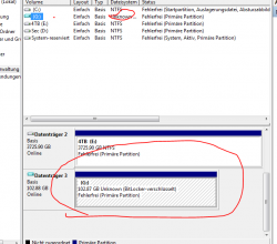 1. Guten Tag, ich hoffe ich habe hier ein paar IT Spezialisten im Einsatz zum Thema Bitlocker. Ausgangsbertriebssystem WIN 10 Pro 64 Bit. . Zum Problem: Ich habe eine .vhd auf einer externen Festplatte erstellt. Diese vhd habe ich eingebunden initialisiert und formatiert. Ich habe auf diese vhd Dateien kopiert. Diese vhd wurde im Anschluss mit Bitlocker 256-bit verschlüsselt. Wiederherstellungsschlüssel wurde auf USB Stick gesichert. Weil mein Rechner Lenovo X220 unter Windows 10 eingeschränkt nutzbar, wurde wieder Win 7 draufgebügelt .Anhand der aufgeforderten ID zum entschlüsseln der Platte gebe ich den Wiederherstellungschlüssel ein, jedoch bekomme ich die Fehlermeldung Wiederherstellungsschlüssel stimmt nicht überein. Erstens wie kann das sein. In der Eingabeaufforderung folgenden Befehl eingegeben Manage-bde -status G: wobei G die verschlüsselte Platte ist ! bekomme ich folgende Resultat: Größe = unbekannt gb , Bitlocker Version = Windows 7, Konvertierungsstatus: unbekannt , Verschlüsselt: unebkannt, Fehler: Ein Fehler ist aufgetreten <Code 0x080070057>: Falscher Parameter Ich weiß dass standardmäßig WIN 7 Pro 128 Bit verschlüsselungstechnik hat. Diese wurde bereits in der GP als auch in der Registry auf 256 Bit angepasst. Das Resultat bleibt das gleiche. Obwohl der Widerherrstellungsschlüssel passen sollte wie ich anhand der ID unschwer erkennen kann, bleibt das Laufwerk verschlüsselt. Die Fehlermeldung bleibt die Gleiche. Bitte um Ratschläge denn meine gehen aus.