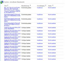 Hallo zusammen, ich bin gerade dabei, mich in das Patch Management mittels WSUS einzuarbeiten. Ich habe in unserem Netz einen neuen Windows Server 2012 R2 aufgesetzt und auf diesem die WSUS-Rolle installiert. Vor dem Wochenende habe ich initial alle Updates genehmigt, so dass diese über das Wochenende heruntergeladen werden konnten. Als Produkte habe ich mehr oder weniger die vorgeschlagenen übernommen und nur Office- und Windows-Varianten entfernt, die wir nicht mehr einsetzen. Nun habe ich per GPO testweise bei einem Windows 7 Client den WSUS-Server als Updateserver eingetragen. Mittels wuauclt.exe /detectnow habe ich das Suchen nach zu installierenden Updates angestoßen. Laut unserer bisherigen Patch Software (Ivanti Patch) fehlt auf dem Client ein einziges Sicherheitsupdate (Sicherheitsupdate für Outlook 2013, KB4011078). Laut Systemsteuerung / Windows Update (auf dem Client) fehlen dem Client 3 Sicherheitsupdates (alles Office, das oben genannte ist nicht dabei). Wenn ich auf dem Client online nach Updates suche fehlen laut Systemsteuerung / Windows Update 2 Sicherheitsupdates (beide Windows). Wenn ich mir auf dem WSUS-Server für den Client den detaillierten Statusbericht ansehe und in diesem nur zu installierende Updates ansehe, werden dort 15 Updates aufgelistet. Das Office-Update der Patch-Software ist enthalten, die 3 Office-Updates, die per Windows Update gefunden wurden, sind enthalten, von den beiden Windows-Updates ist nur eins enthalten. Nun bin ich ziemlich irritiert. Eigentlich hatte ich gehofft, dass mindestens Windows Update-WSUS, Windows Update-Online und WSUS-Bericht übereinstimmen. Wie können diese Differenzen sein und wie kann ich sicher sein, dass meine Rechner mit allen Sicherheitsupdates versorgt sind? Gruß, AMiGA -