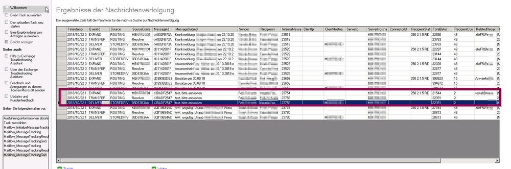 Die Mail kommt von Intern. Benutzer A.xyz.de schickt Mail an Gruppe Alle_de.xyz.de Alle bekommen die Mail, nur Frank Müller.xyz.de nicht.