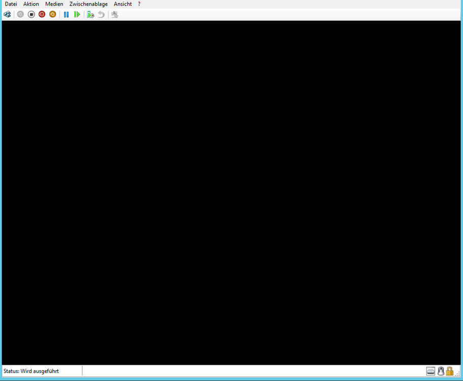 Danach sieht man nur noch einen schwarzen Bildschirm (2012R2_Start2.png) mit einem kleinen Punkt, der den Mauszeiger repräsentiert.