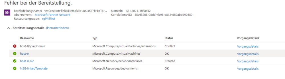 Hallo zusammen, ich bin gerade dabei eine Testumgebung in Azure für Windows Virtual Desktop aufzubauen. Hierfür habe ich eine VM als DC "Windows Server 2019" erstellt und konfiguriert. Im nächsten Schritt bin ich nach der Anleitung :Windows Virtual Desktop-Hostpool im Azure-Portal: Azure | Microsoft vorgegangen um einen Hostpool zu erstellen. Leider bekomme ich beim erstellen der VMs, bzw. beim Domain Beitritt der VMs immer einen Fehler: ############### Ich habe das Virtuelle Netzwerk mit dem erstellen DC als DNS konfiguriert. Zum Test habe ich eine VM außerhalb der Windows Virtual Desktop Umgebung, allerdings im virtuellen Netzwerk erstellt und den Domain Join händisch getestet. Dieser funktioniert Problemlos. Anbei der Fehler: Hat jemand noch eine Idee hierzu? Grüße Phil Edit: Nach diversen Versuchen hat es nun funktioniert. Ich habe nur noch folgenden Resourcenanbieter registriert: Grüße Phil -