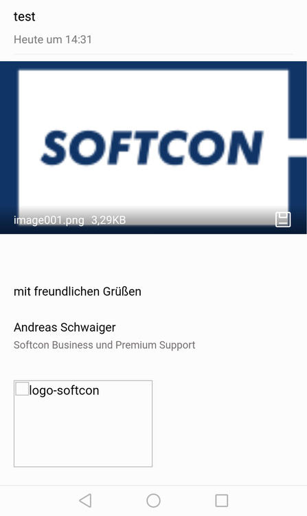 Hallo, ich habe auf meinem Firmen PC unter Outlook 2016 ein Exchange Konto eingerichtet. Unter Outlook Optionen -> E-Mail -> Signaturen habe ich eine Signatur hinzugefügt. Das Logo habe ich per "Grafik einfügen" hinzugefügt. Wenn ich eine Testmail auf mein Handy schicke, wird die Grafik als Anhang angezeigt. Sie sollte eigentlich direkt mit der Mail geladen werden. Kann es sein, dass die direkte Grafikeinbindung wegen dem Exchange Konto nicht funktioniert? Habt ihr einen Tipp wie ich das lösen kann? Danke! Andi -