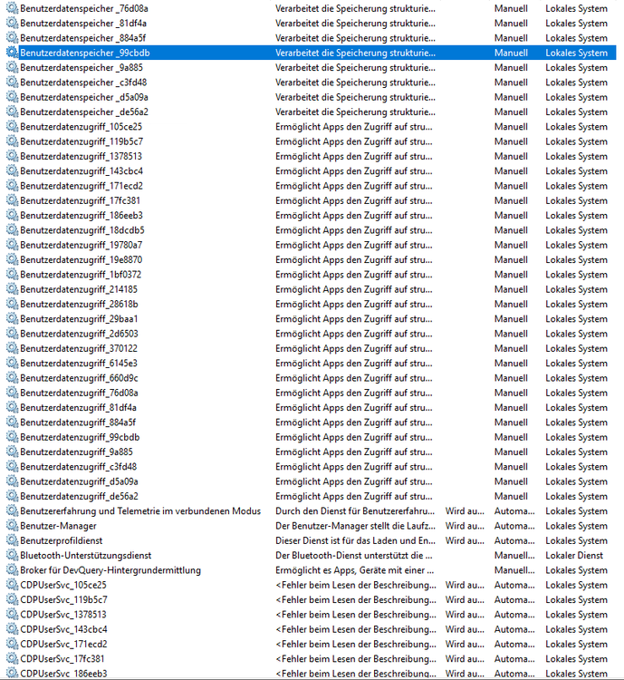 Auf einer Website habe ich jetzt zu dem Fehler "CDPUserSVC Fehler bei der Beschreibung" etwas gefunden (Website: https://borncity.com/win/2017/11/19/windows10-server-2016-issues-with-cdpusersvc/). Auf der Website wird ein Windows Update für die Problematik verantwortlich gemacht. Websiteinhalt: "Our experience with the current cumulative update (KB4048953) on Windows Server 2016 Datacenter v1607 – English After installing KB4048953 – Cumulative update for Windows 10 Version 1607 and Windows Server 2016: November 14, 2017 (OS Build 14393.1884) the following messages appear on the servers: CDPUserSvc has stopped working" Die zweite Lösung wäre den Prozess zu isolieren: sc config cdpusersvc type=own Aber den Eventlog Applikation Error bekomme ich bei mir in dem Log garnicht. Im Nachgang wird auch gesagt das das nächste Kumulative Update diesen Fehler fixed (Falls trotzdem der Fehler noch Auftritt soll man den Prozess isolieren oder das Update deinstallieren). Ist es trotzdem Ratsam das Windows Update zu deinstallieren oder doch lieber den Prozess zu isolieren? Habe ich durch die Prozess Isolierung einen Nachteil der mir bis dato nicht bewusst ist?