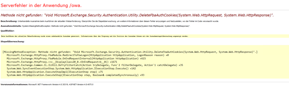 Method not found: "Microsoft.Exchange.Security.Authentication.Utility.DeleteFbaAuthCookies" nach CU17-Update