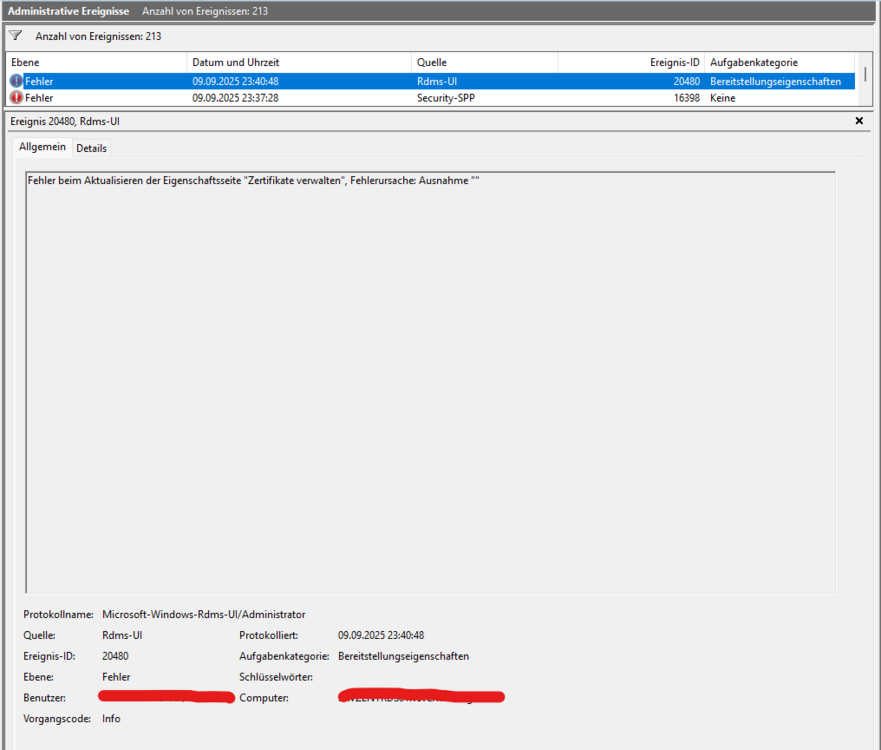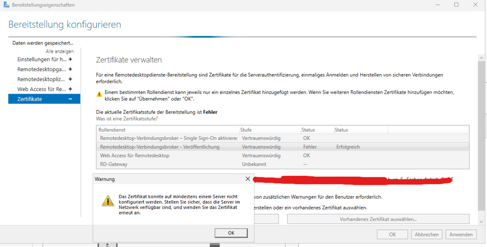 Windows Server 2025 - RD-Verbindungsbroker - Zertifikatsprobleme