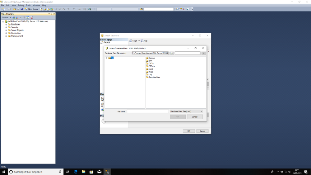 7. Hallo Zusammen, Ich haben ein Problem. Ich mochte im SQL Server 2014 Management Studio eine Datenbank hinzufügen. Die Datenbank liegt auf einem externen NAS. Wenn ich die DB einfügen möchte werden mir allerdings nur lokale und keine externen Laufwerke angezeigt. Weis jemand woran das liegen könnte und wie man es beheben kann? Danke schonmal! MFG MV