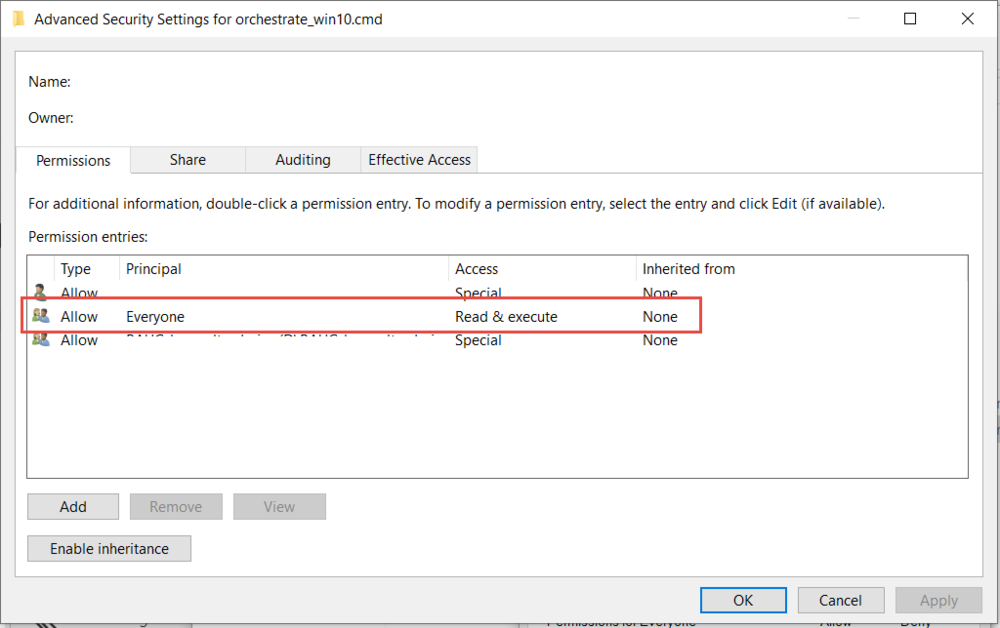 Mir ist aber aufgefallen, dass wenn die GPO Ordnerumleitung die Verzeichnisse erstellt, die Vererbung der Berechtigungen anders vererbt werden. Immer nur "This Folder", auch die Unterverzeichnisse. Immer nur This Folder. Der Platzhalter "Creatot Owner" ist aber auf "This Folder, Subfolder and File" gesetzt.
