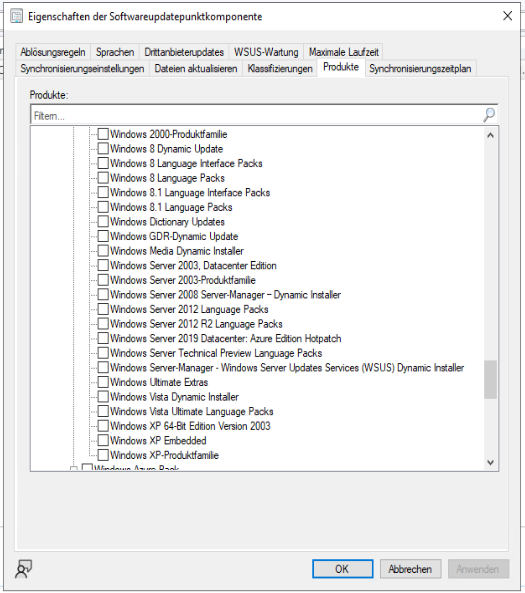 Hallo Zusammen, ich habe nach langer Planung und Vorbereitung gestern eine neue MECM Umgebung gebaut für meinen Arbeitgeber. Läuft auf Win 2022, MECM 2509 und SQL Server 2022. Muss echt sagen da hat sich MS irgendwie nicht viele Gedanken gemacht, wird immer ätzender. Komponenten sind alle Grün und zeigt keinerlei Fehler. Heute Morgen habe ich das MECM weiter konfiguriert. Einen vorbereiteten SUP hinzugefügt, Grenzen gesetzt und das AD absuchen lassen. Eben wollte ich mal die Updates vom SUP holen lassen und zu meiner Überraschung sehe ich in allen Produkten kein Windows 11, und auch Win Server ab 2019 sehe ich nicht. Bin ich zu schnell einfach mal ein paar Stunden warten bis sich dies aktualisiert? Synchronisation habe ich vom MECM bereits ausführen lassen, die hat auch funktioniert. LG