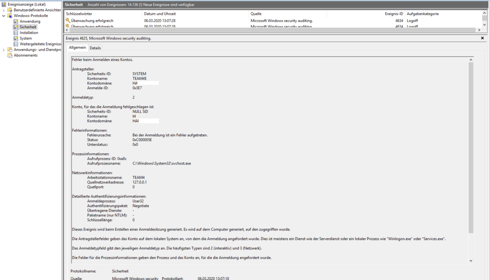 Ich habe ein seltsames Problem mit der Anmeldung von Benutzern einer Domäne mit Windows 10 Rechnern (Server Win 2012) und hoffe auf gute Ideen. Hintergrund ist folgender. Ich habe vom Chef die Aufgabe bekommen an einem bestehenden Netz dessen ursprüngliche Admin leider verstorben ist, einen neuen PC`s für einen neuen Mitarbeiter einzurichten. Ich habe also einen Windows 10 Pro Rechner beschafft und diesen in die Domäne eingebunden. Das klappte problemlos. Habe dann auf dem Server im Active Directory einen neuen User angelegt. Orientiert habe ich mich an einem bestehenden User. Wenn ich nun versuche mich an der Domäne am neuen Rechner anzumelden, bekomme ich die Fehlermeldung: „Sie konnten mit diesen Informationen nicht angemeldet werden, weil ihre Domäne nicht verfügbar ist.“ Melde ich mich aber mit dem Domänen Administrator an, klappt es. Grundsätzlich klappt die Domänenanmeldung an dem PC also. Auch mit einem bestehenden User, der auf einer anderen bereits existierenden Win 10 Arbeitstation arbeitet, kann ich mich nicht an diesem Rechner anmelden?! Es sind keine Beschränkungen (Zeitlich/Computer) für die Anmeldung im Userprofil eingestellt. Es geht sowohl die Anmeldung mit Domäne\User als auch User@Domäne.tld nicht. DNS scheint zu funktioniert, Rechner hat IP bekommen und auch Gateway und DNS zeigen auf den Server. Mit dem neuen User kann ich mich aber auch nicht an einer existierenden Arbeitsstation (Win 10 Pro) anmelden, dafür aber an allen noch existierenden Win7 Arbeitsstationen. ?! Nach langem Hin und Her habe ich folgendes herausgefunden. Alle User können sich auf allen Win 7 Rechnern anmelden, aber nur die entsprechenden User auf ihren Win 10 Arbeitstationen. Der Domänenadmin kann sich überall anmelden. Also noch mal zusammenfassend, was auf drei getesteten Rechnern mit drei verschiedene Usern passiert, falls ich mich zu kompliziert ausgedrückt habe: Neue Station (Win 10 Pro) Ich kann mich weder mit dem neuen, noch mit dem bestehenden User anmelden, aber mit dem Domänenadmin. Grundsätzlich klappt also die Anmeldung an der Domäne, aber nicht mit Userkonten, nur mit dem Domänenadmin. Bestehende Station (Win 10 Pro) Ich kann mich mit dem bestehendem User und dem Domändenadmin anmelden, nicht aber mit dem neuen User und auch nicht mit anderen bestehenden Usern?! Bestehende Stationen (Win 7) Hier kann ich mich mit allen Usern anmelden. Alle Rechner (Win 10) sind auf aktuellem Stand, das Abschalten von Defender/Virenschutz brachte keine Änderung. User habe ich, was Einstellungen und Gruppen angeht, verglichen und auch mal als Kopie von einem funktionierenden angelegt. Keine Änderung. Ich habe dem User mal in alle Gruppen genommen in denen der Domänen Admin ist. Keine Änderung Und ich bin die Gruppenrichtlinien durchgegangen, konnte aber nichts ungewöhnliches entdecken. Ich habe die Gruppenrichtlinien auch mal testweise deaktiviert und mit gpupdate /force aktualisiert. Keine Änderung. Hat jemand eine Idee wo das her kommen kann? Bzw. wo man es einstellen kann, das man sich explizit an der Windows 10 Arbeitstationen NICHT anmelden kann? Hat jemand eine Idee, wo ich weiter suchen kann? Vielen Dank im Voraus Ralf