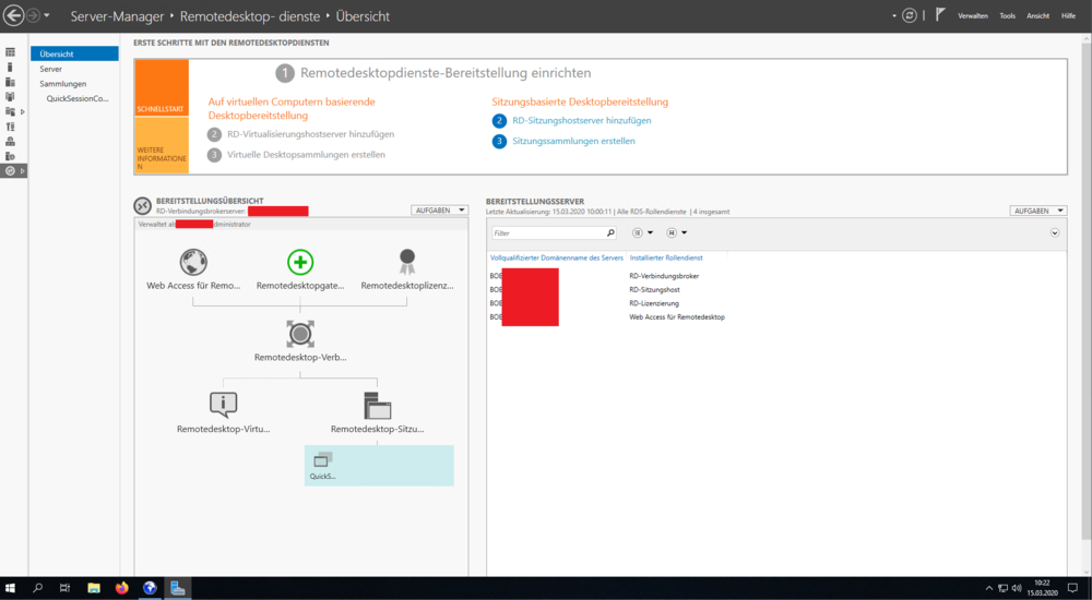 1. Hallo liebe Community, ich bin etwas verzweifelt deswegen habe ich mich im Internet nach einer Möglichkeit umgesehen, Hilfestellung zu bekommen. Das ist auch der Grund warum ich mich hier angemeldet habe. Kurze Nebeninformation, ich bin kein Informatiker, ich pflege die IT eines Unternehmens mit 100 Mitarbeiter. Im laufe der Zeit hat es sich ergeben das ich die IT in diesem Unternehmen übernommen habe, ich bin seit mehr 11 Jahren dafür zuständig und erarbeite mir meine Lösungswege meistens eigenständig. Aufgrund mangelnder Erfahrung bin ich jetzt auf ein Problem in Zusammenhang mit RDP bzw. RD-Virtualisierungshostserver und VPN gestoßen. Folgendes Szenario: Ich habe ein VPN auf einen Debian Server eingerichtet welcher die Verbindung handelt und die DNS vom lokalen PC blockiert, DNS und Gateway push, damit nicht der gesamte Traffic des VPN-Clients über die Verbindung geht. Des Weiteren habe ich einen Windows Server 2019 als RDP Server eingerichtet, also RD-Verbindungsbroker, RD-Sitzungshost und RD-Lizenzierung. Die Cals würden ebenfalls entsprechend eingerichtet. Greift man nun via VPN auf Programme oder andere Server/Anwendungen im Netzwerk zu, funktioniert die Verbindung tadellos. Versuche ich eine Verbindung zu dem o.g RDP Server aufzubauen, funktioniert diese genau 15-20 Sekunden bevor _nicht_ nur die Verbindung zum Remote Server sondern die gesamte Internetverbindung unterbricht bzw. zu Fehlern führt. Ich kann die VPN Verbindung neustarten aber nach ca. 20 Sekunden bekomme ich das gleiche Problem. Ich habe das Gefühl, dass es ein Problem beim blocken der DNS bzw. Gateway Übergabe bei der Verbindung zu dem RDP Server ist, ich habe probiert den Traffic mitzuschneiden aber konnte keine Fehler beobachten. Falls jemand eine Idee hat, welcher von diesen Windows Diensten oder die Kombination aus meinem VPN Setting diese Probleme verursacht, würde ich mich sehr über eine Antwort freuen. Liebe Grüße