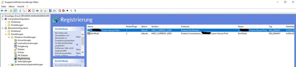 Sobald beide Gpos bei dem User greifen, scheint es so, als ob die Druckerinstallation die der Registry Keys überflügelt.