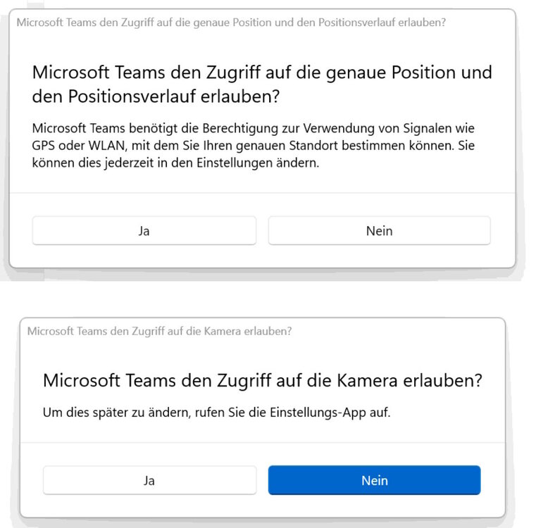 Microsoft Teams den Zugriff erlauben > Position & Kamera
