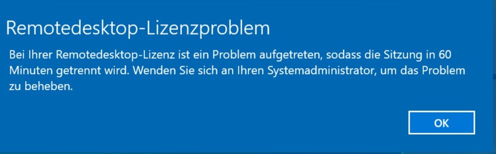 Ein Kunde hat das Problem das ihn anzeigt wird das er Remotedesktop-Lizenzprobleme hat.