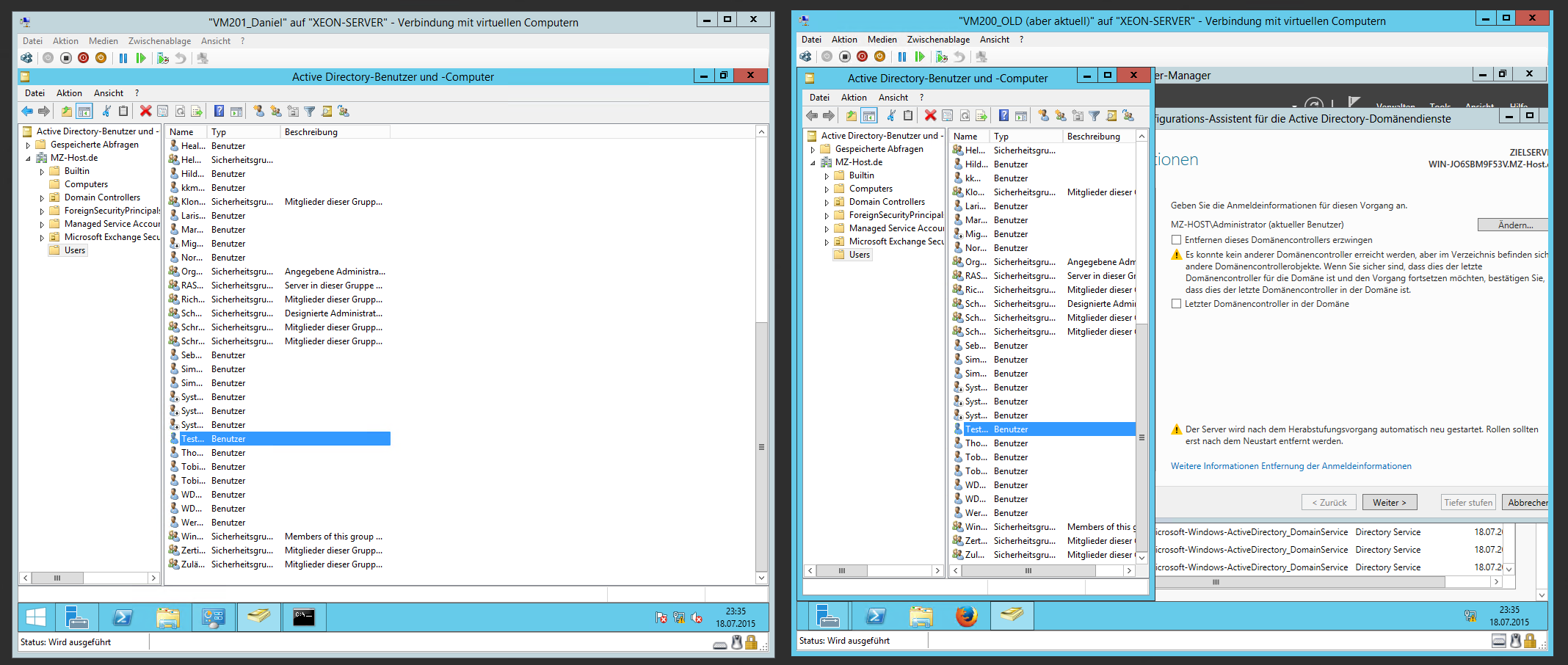 WIN-JO6SBM9F53V	Warnung	Die Verzeichnispartition CN=Schema,CN=Configuration,DC=MZ-Host,DC=de auf dem Domänencontroller WIN-JO6SBM9F53V.MZ-Host.de hätte innerhalb der letzten 8 Tage gesichert werden müssen.	Konfiguration