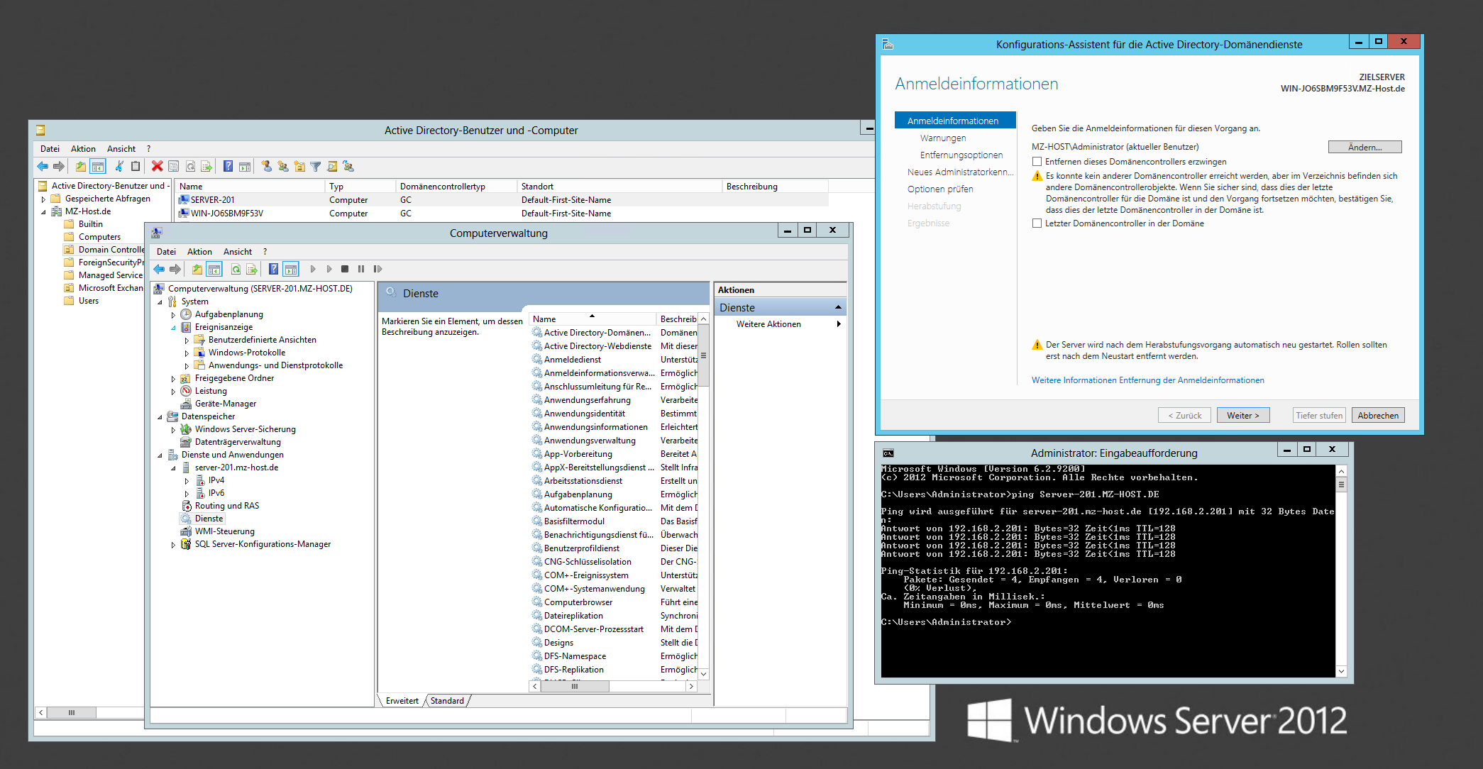 WIN-JO6SBM9F53V	Warnung	Die Verzeichnispartition DC=MZ-Host,DC=de auf dem Domänencontroller WIN-JO6SBM9F53V.MZ-Host.de hätte innerhalb der letzten 8 Tage gesichert werden müssen.	Konfiguration